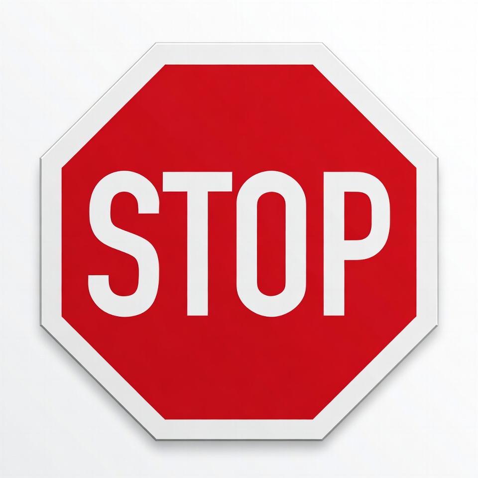 A classic red octagonal stop sign with bold white STOP letters centered on it. The sign has a white border and is isolated against a plain white background.