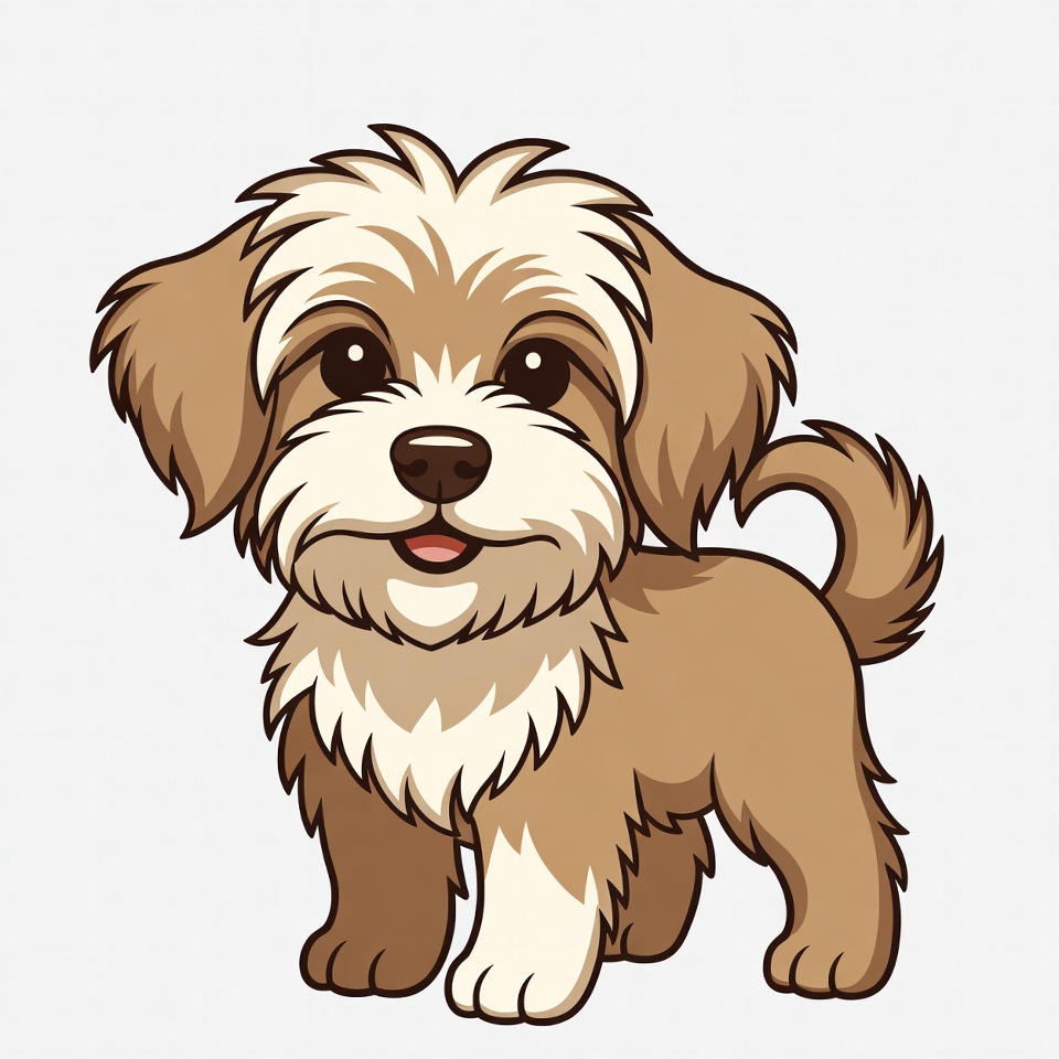 adorable pet, animal, big eyes, brown dog, cartoon, clipart, cute, dog, fluffy fur, happy puppy, illustration, isolated background, puppy, standing dog, vector art, white markings, young dog, Shih Tzu