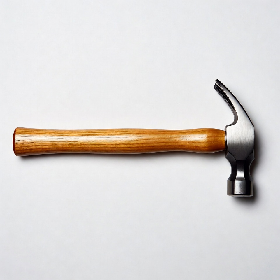 DIY, carpentry, claw hammer, construction tool, hand tool, hardware, isolated, metal head, nail puller, silver hammer, tool, white background, wood handle, wooden handle, hammer