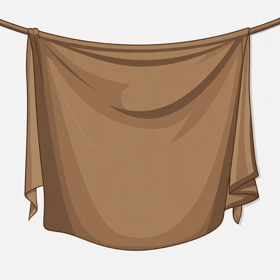 clipart, cloth, clothesline, draped cloth, folded fabric, hanging fabric, illustration, isolated background, laundry line, sheet, tan cloth, towel, brown fabric