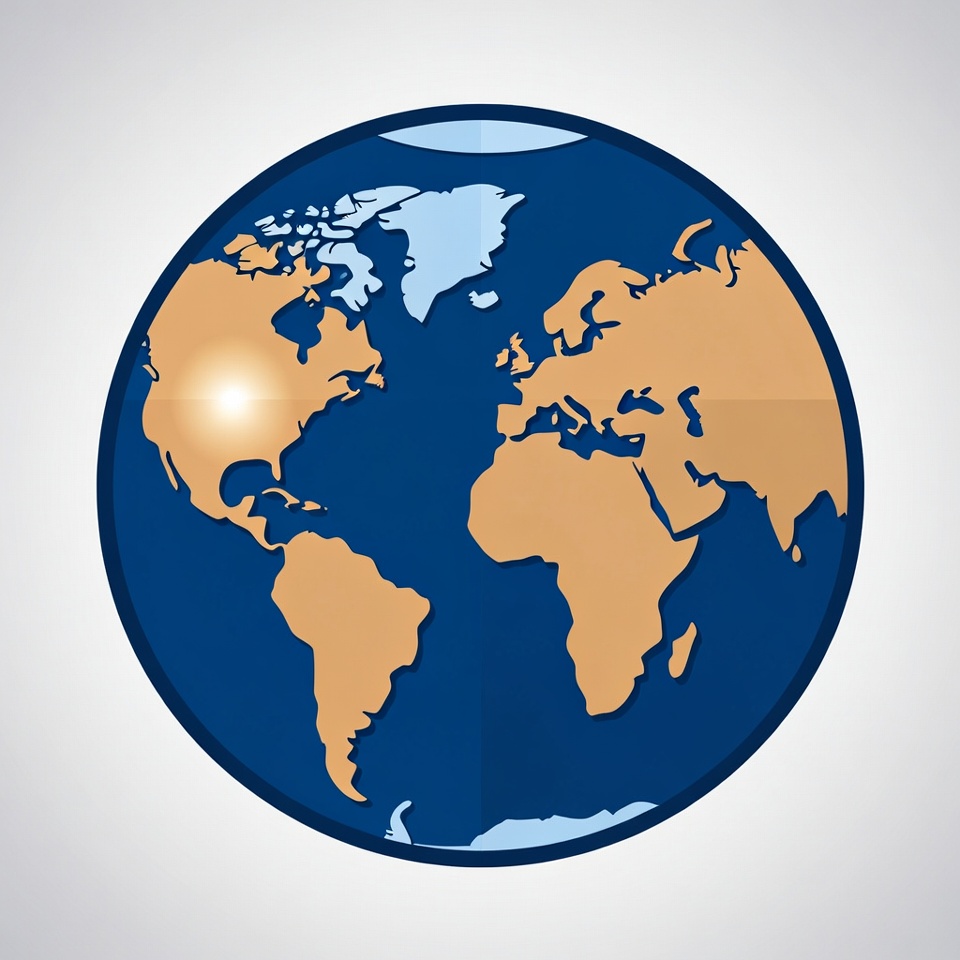 A flat illustration of the Earth shows continents in orange tones on a blue ocean background. Canada is prominently highlighted with a glowing white light. The design features clean vector lines on an isolated white background.