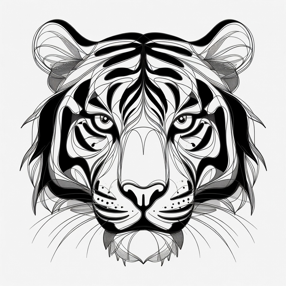 abstract tiger, animal, black and white, clipart, drawing, eyes, fierce tiger, fur pattern, geometric tiger, illustration, isolated background, line art, stripes, tiger face, tiger head, vector art, whiskers, wild animal, tiger