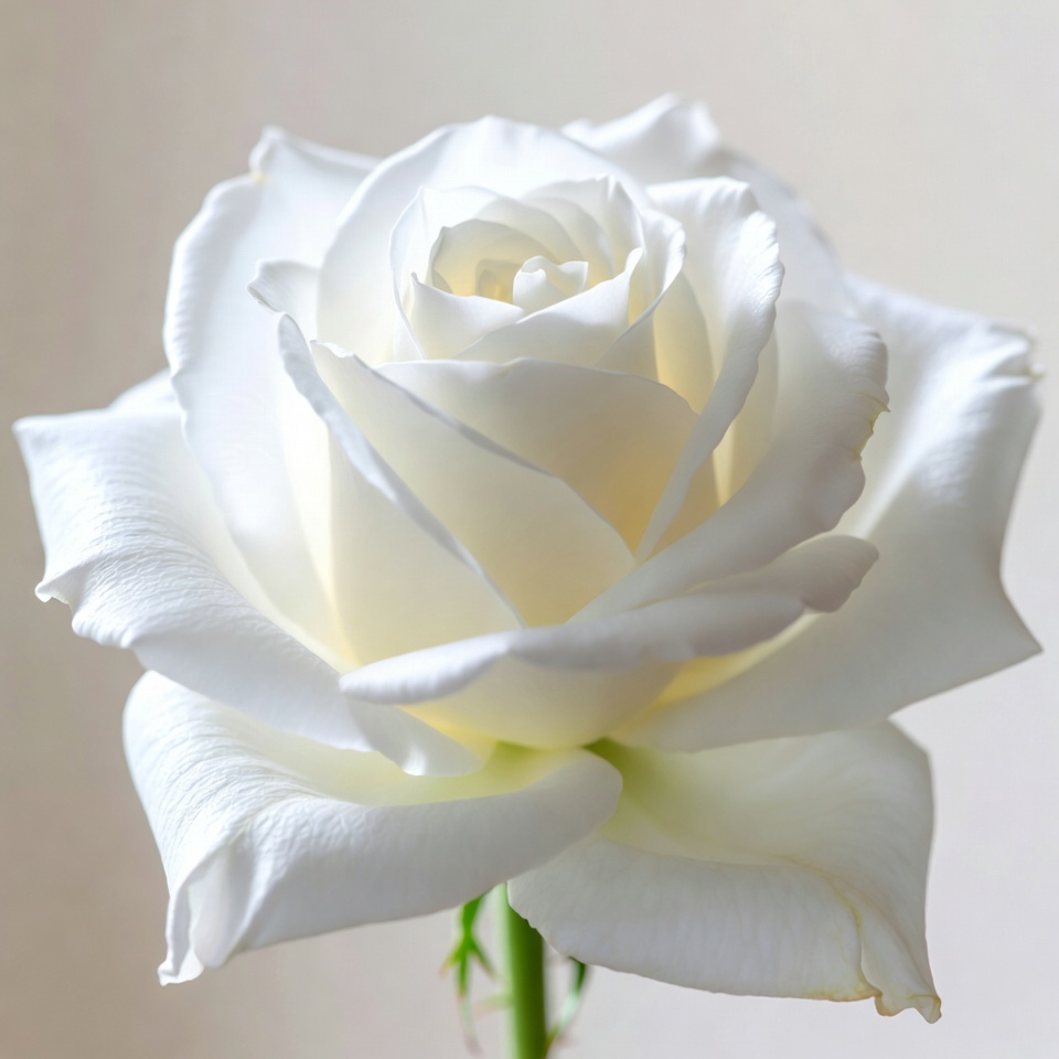 bloom, closeup, elegant rose, floral, flower, garden flower, green stem, isolated background, nature, petals, pure white, rose, stem, white flower, white rose
