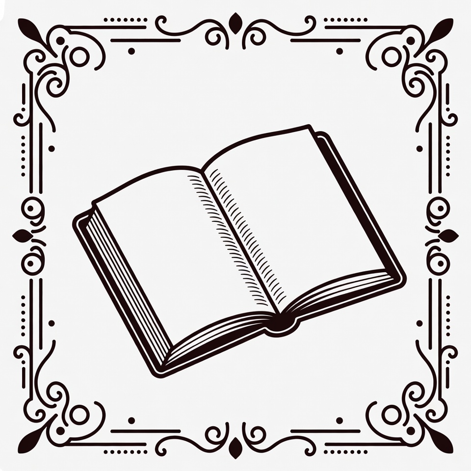 blank pages, book, clipart, decorative border, drawing, floral border, illustration, isolated background, line art, ornate frame, reading, sketch, vintage frame, white background, open book