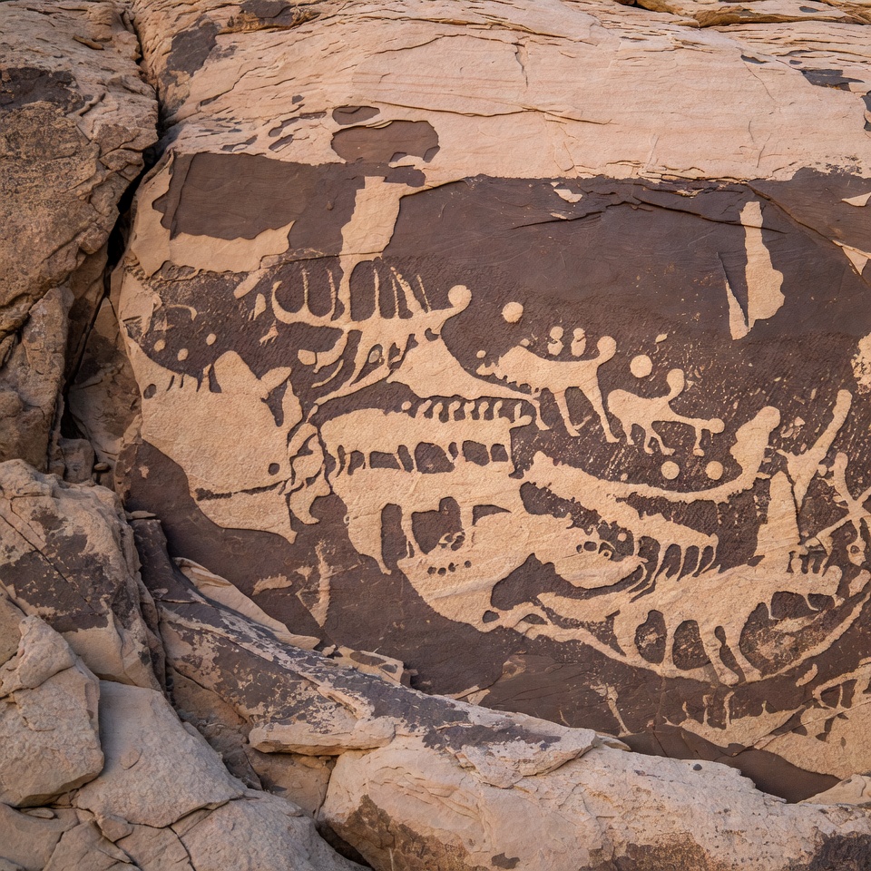Ancient Petroglyphs on Desert Rock