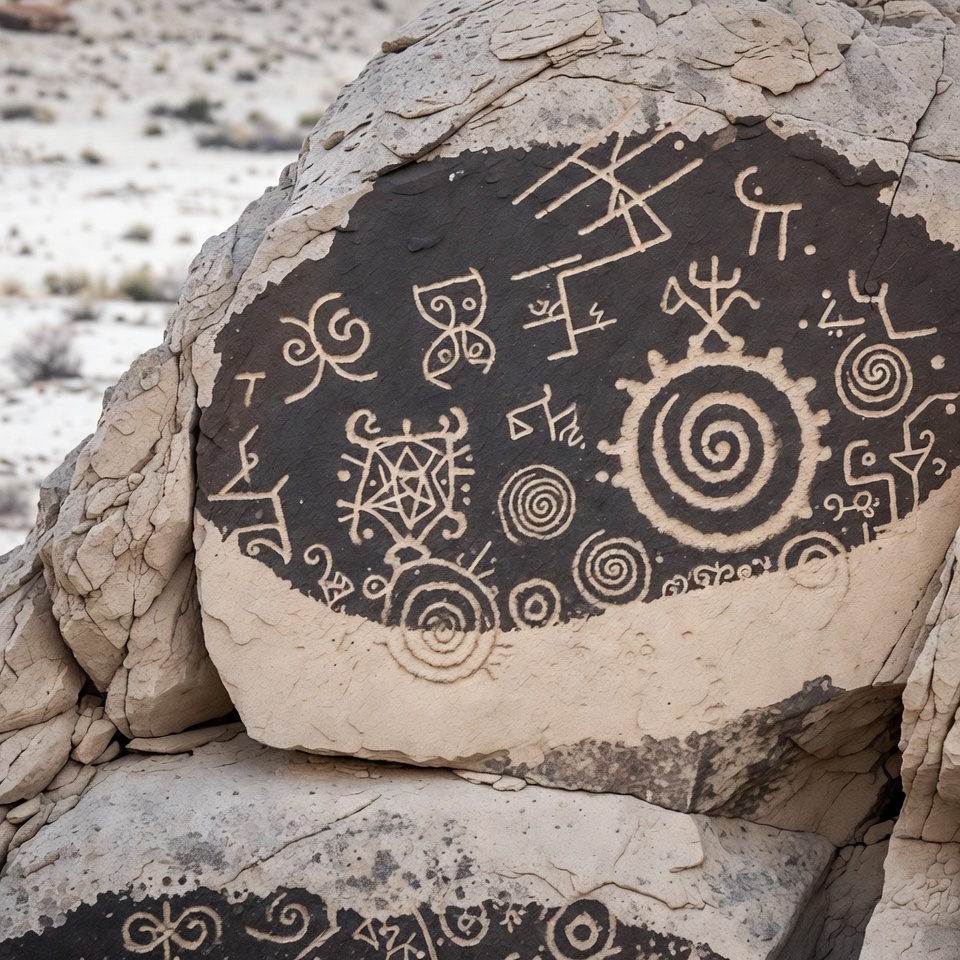 Ancient Petroglyphs on Desert Rock