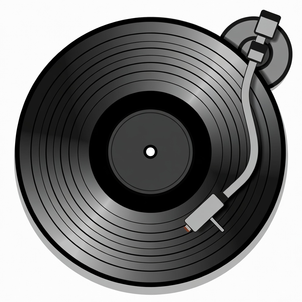 DJ equipment, audio, black vinyl, clipart, gray turntable, illustration, isolated background, music, needle, phonograph, record player, retro music, sound equipment, tonearm, turntable, vector graphic, vinyl record