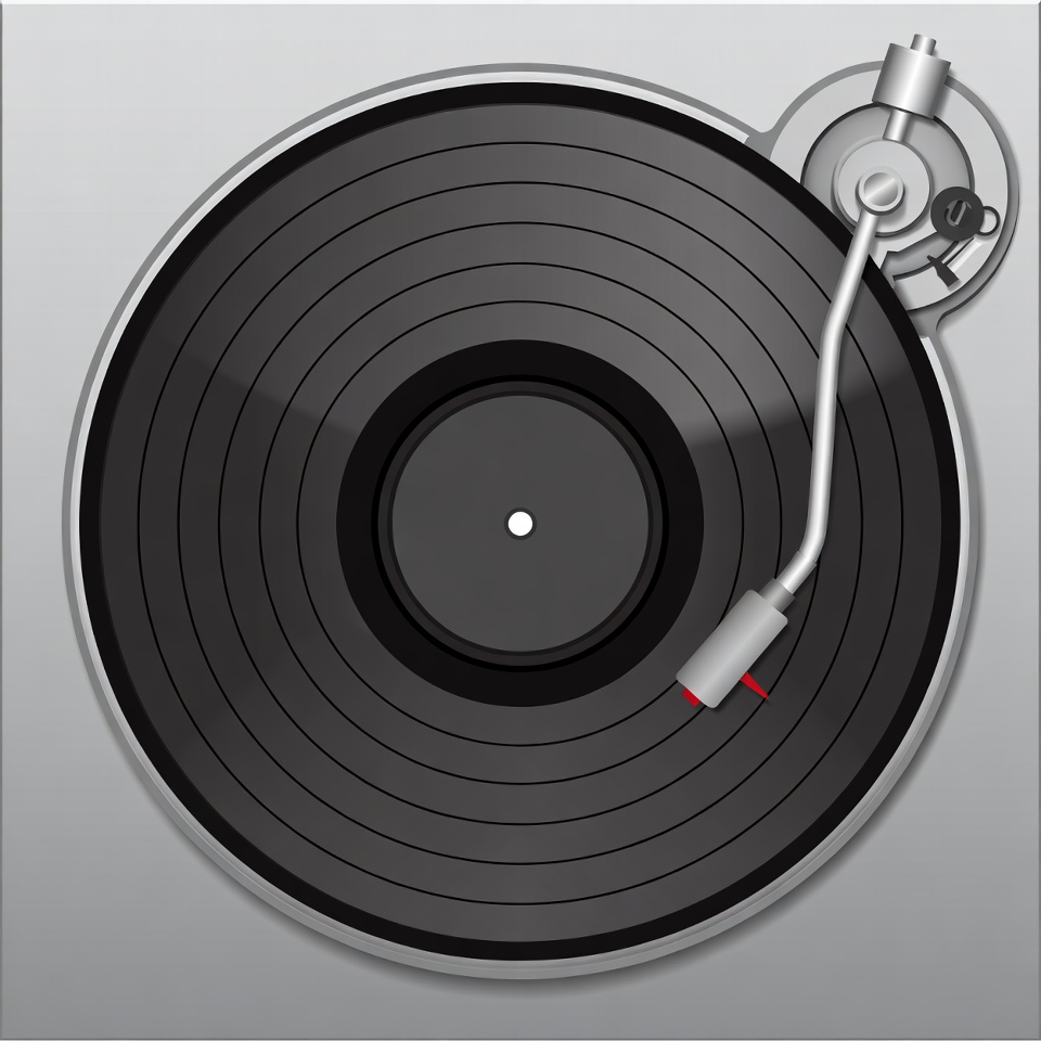 DJ equipment, LP record, audio equipment, black vinyl, clipart, hi-fi, illustration, isolated background, music player, needle, phonograph, platter, record player, silver turntable, stylus, tonearm, vinyl record, turntable