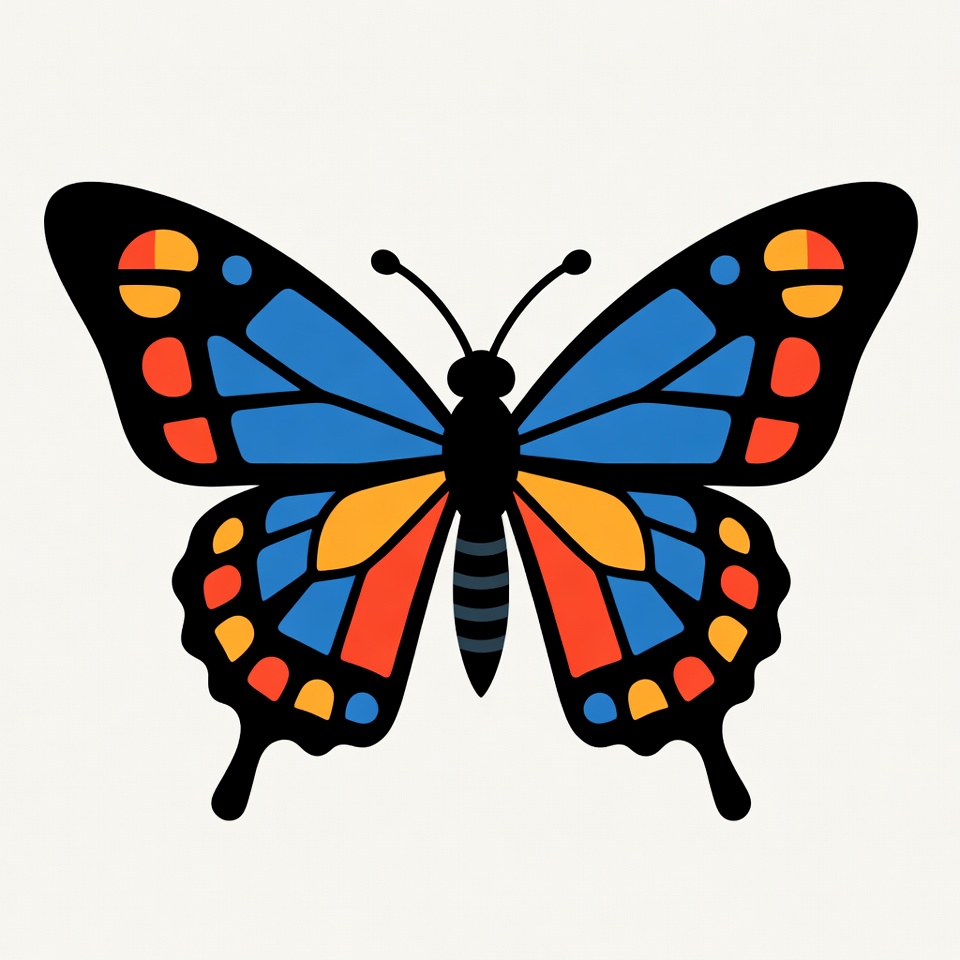 beautiful butterfly, black outline, blue butterfly, butterfly clipart, butterfly illustration, butterfly wings, colorful butterfly, emoji style, flying insect, graphic butterfly, insect, isolated background, nature, orange wings, patterned wings, red wings, vector art, vibrant butterfly, yellow wings, butterfly