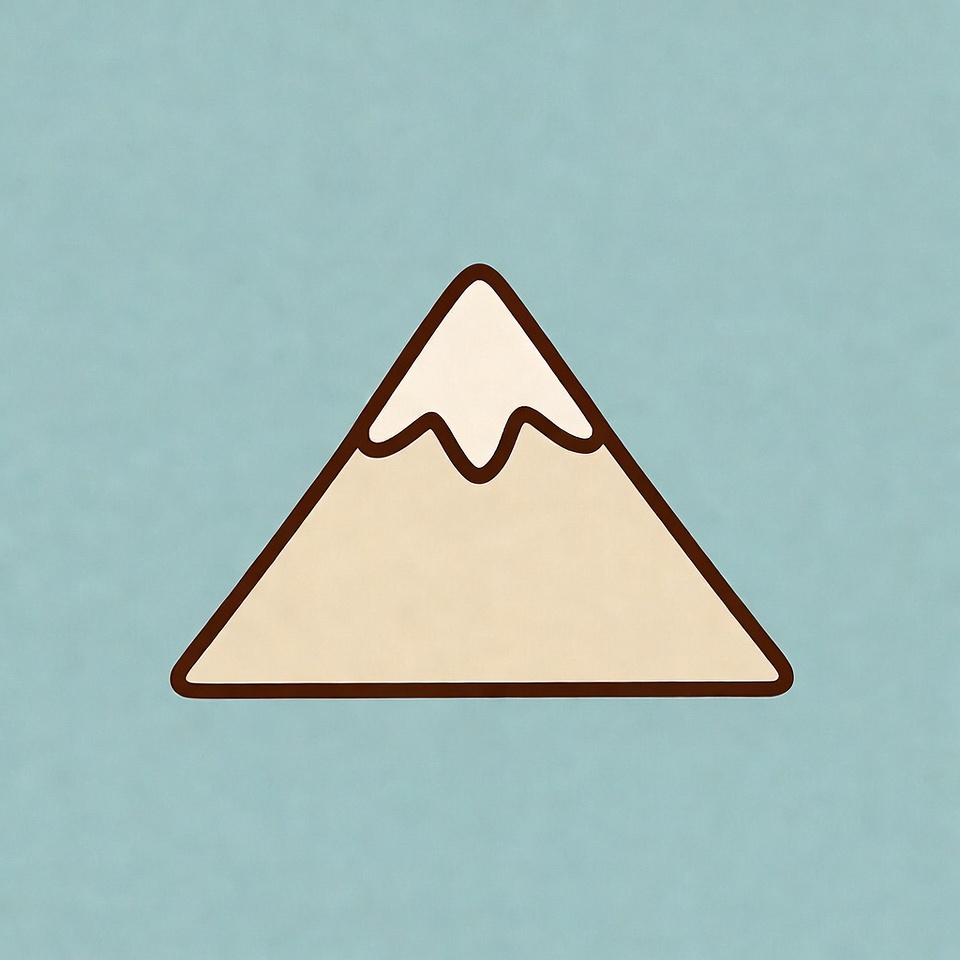A simple cartoon illustration of a tall mountain with a white snowy peak and tan slopes outlined in brown. The mountain is centered on a solid light blue background. It features a clean, minimalist design with soft, rounded edges.