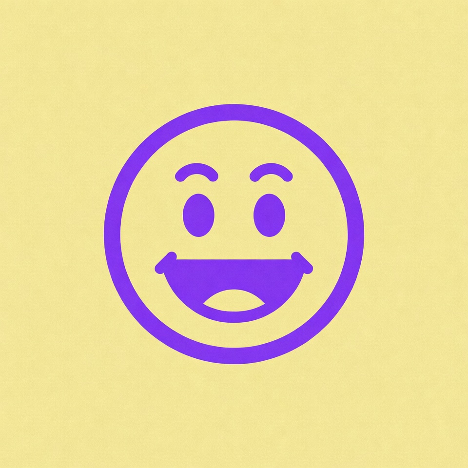 cartoon face, cheerful emoji, digital icon, emoji, face emoji, grinning face, happy face, icon, illustration, isolated background, purple emoji, smiling emoji, vector icon, yellow background, smiley face