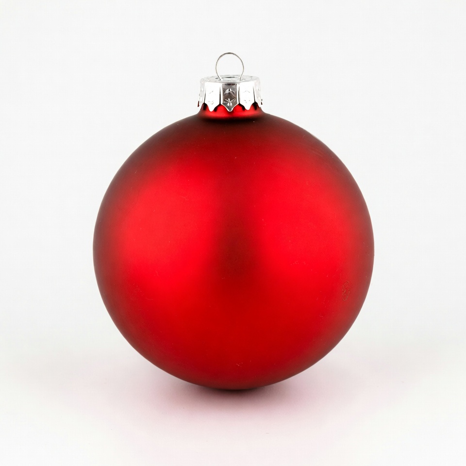 Christmas ball, festive ornament, glass bauble, holiday decoration, holiday ornament, isolated background, red bauble, red sphere, shiny ball, silver hook, white background, Christmas ornament