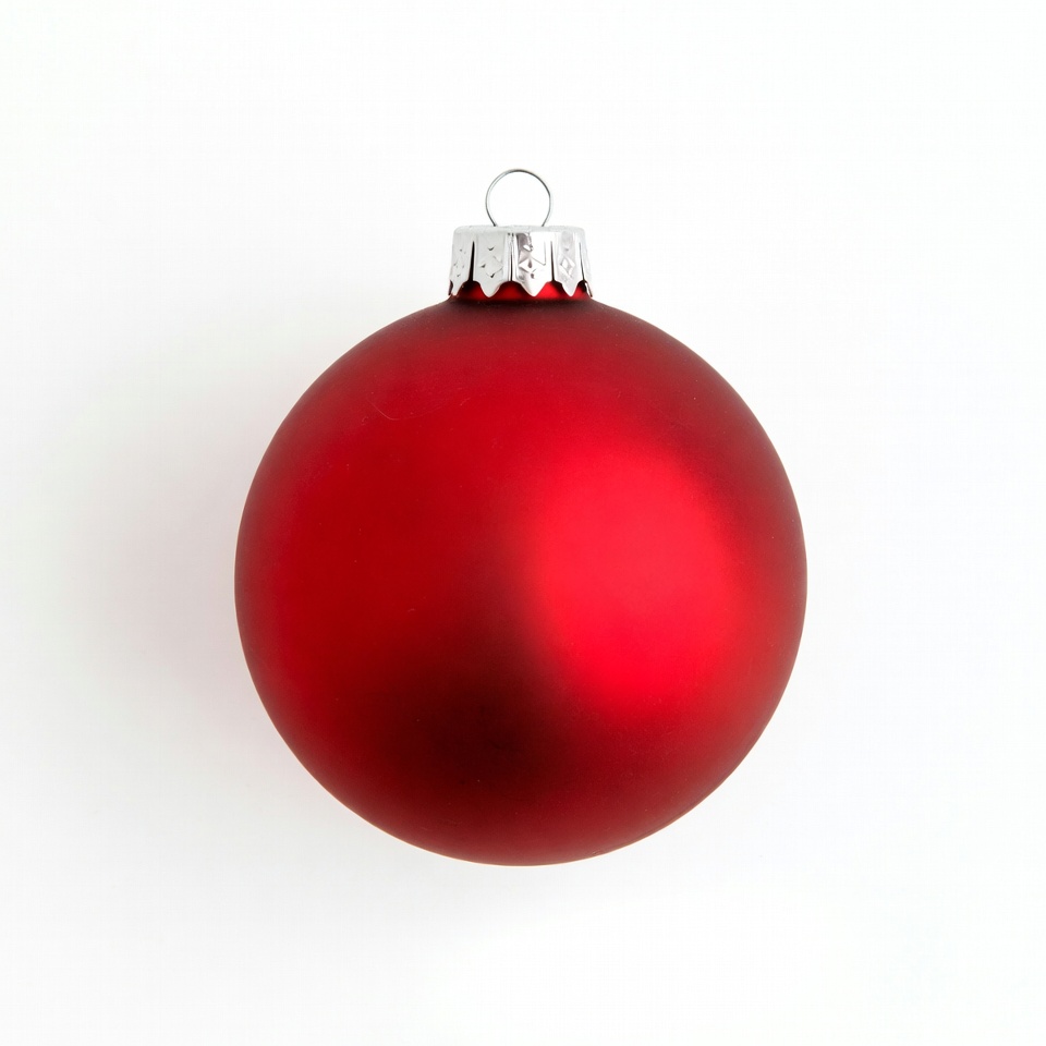 Christmas ball, Xmas decoration, bauble, festive ornament, glossy red, hanging loop, holiday decoration, holiday sphere, isolated, red bauble, shiny ball, silver cap, sphere, white background, Christmas ornament