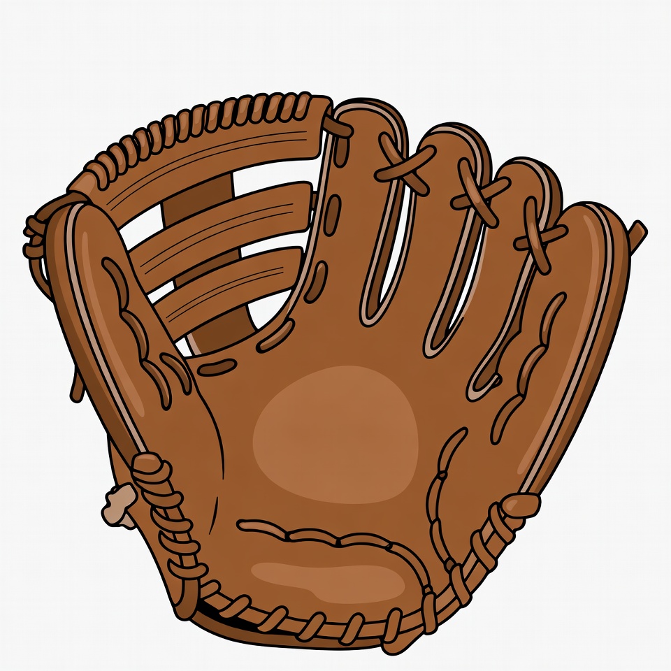 baseball mitt, brown glove, cartoon, catchers mitt, clipart, glove, illustration, isolated background, leather glove, pocket, sports equipment, stitches, vector art, webbing, baseball glove