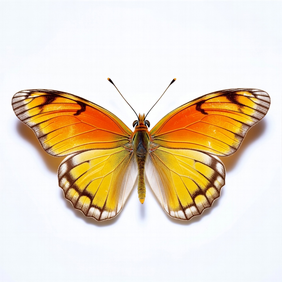 antennae, black borders, detailed wings, insect, isolated background, macro, nature, orange butterfly, vibrant colors, white background, wildlife, wings spread, yellow wings, butterfly
