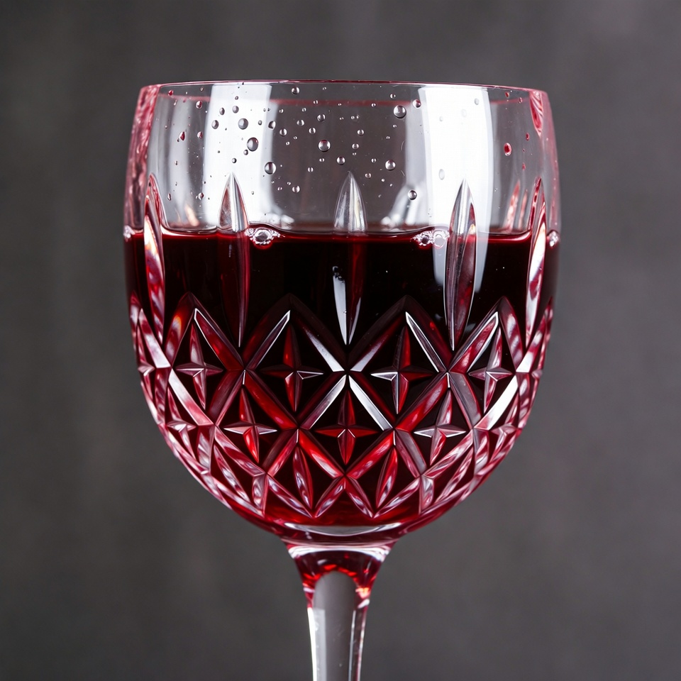 alcohol, beverage, cabernet, closeup, condensation, crystal glass, cut glass, drink, elegant glass, fine glassware, full glass, goblet, gray background, luxury drink, merlot, stemware, studio shot, water droplets, wine, wine glass, red wine