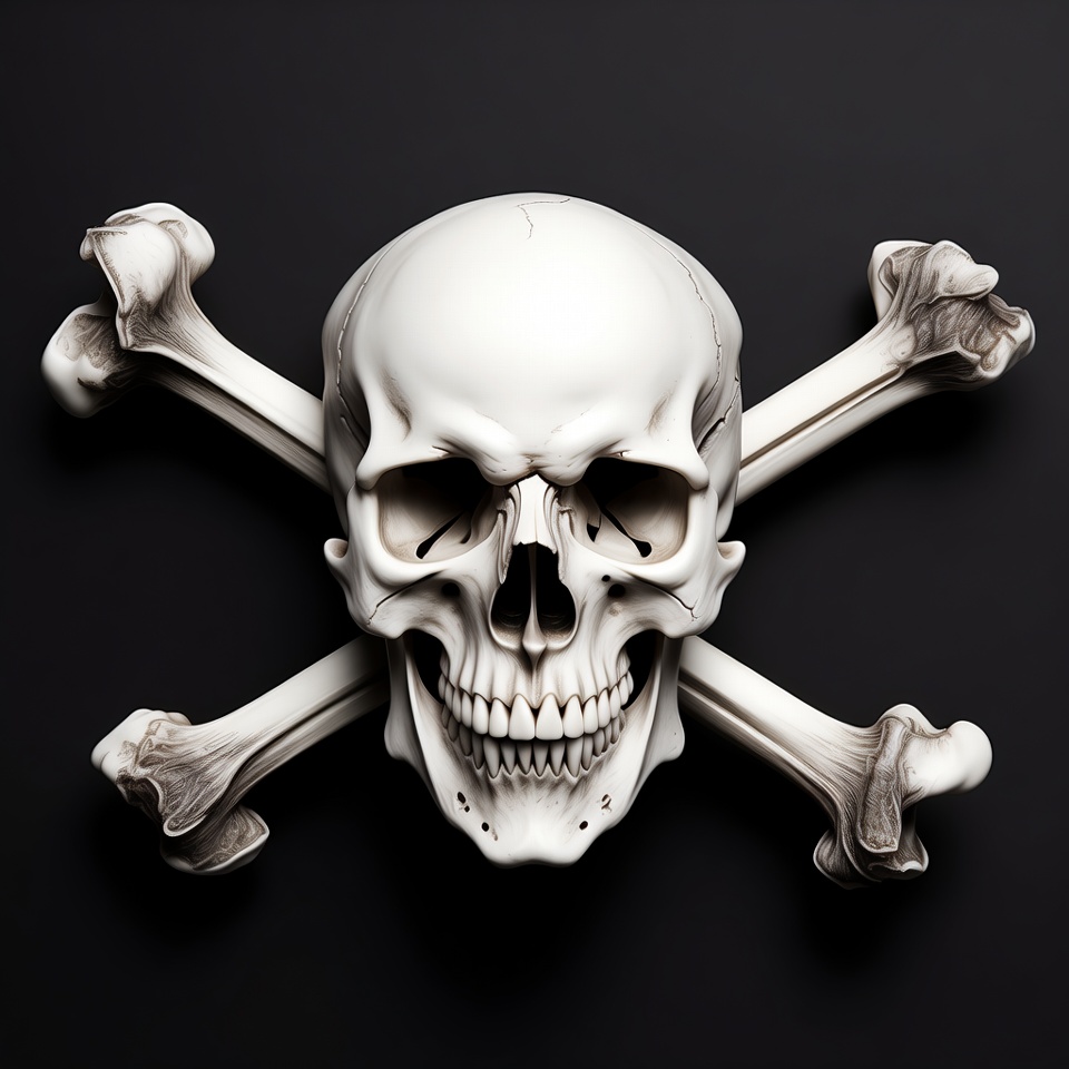 White Skull and Crossbones on Black