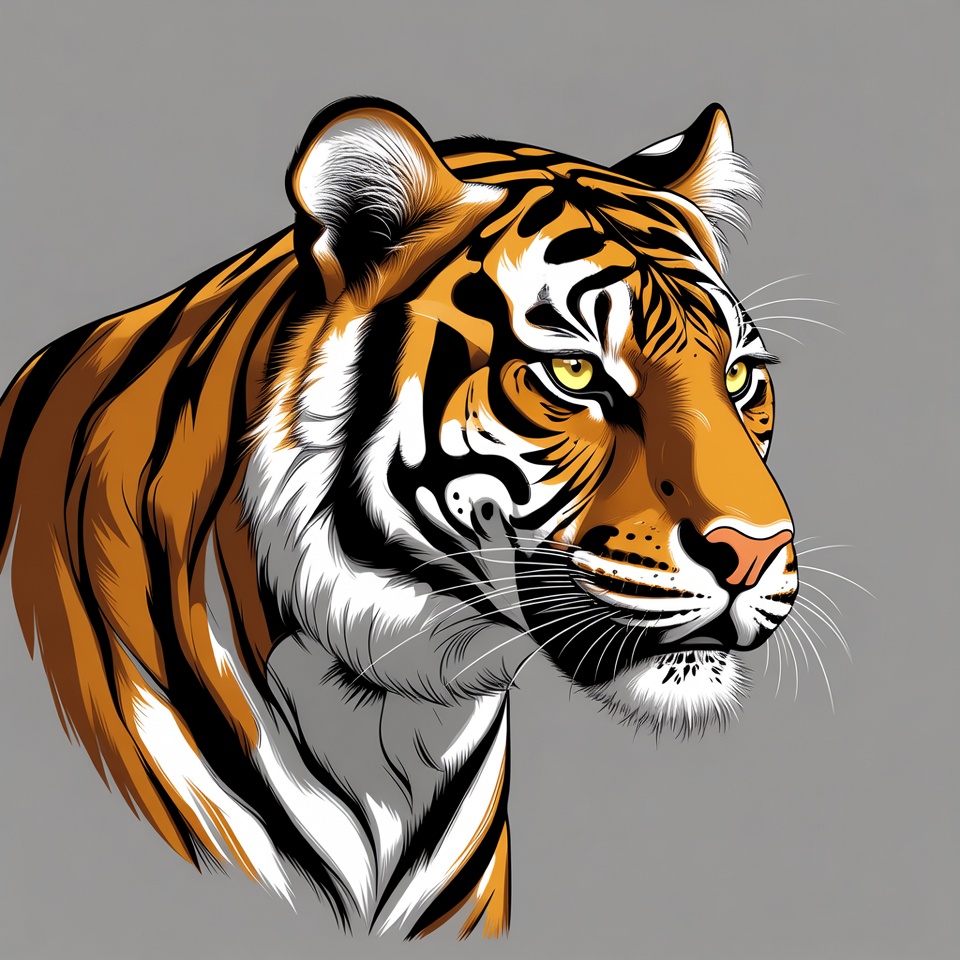 animal, animal portrait, big cat, clipart, digital art, fierce tiger, graphic design, green eyes, illustration, isolated background, orange fur, profile view, side view, stripes, tiger face, tiger head, vector art, wild animal, tiger