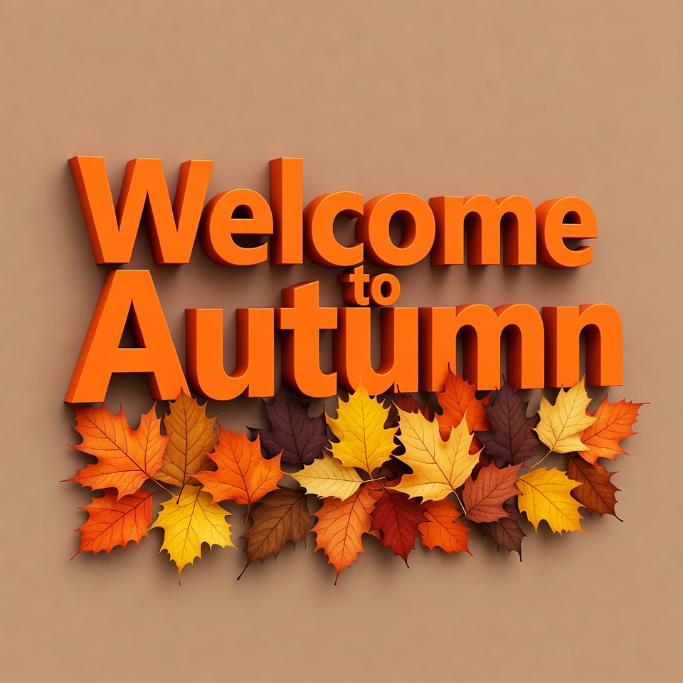 3D text, beige background, brown leaves, clipart, fall, fall leaves, graphics, illustration, isolated background, leaves, orange leaves, orange text, red leaves, seasonal, welcome, yellow leaves, autumn