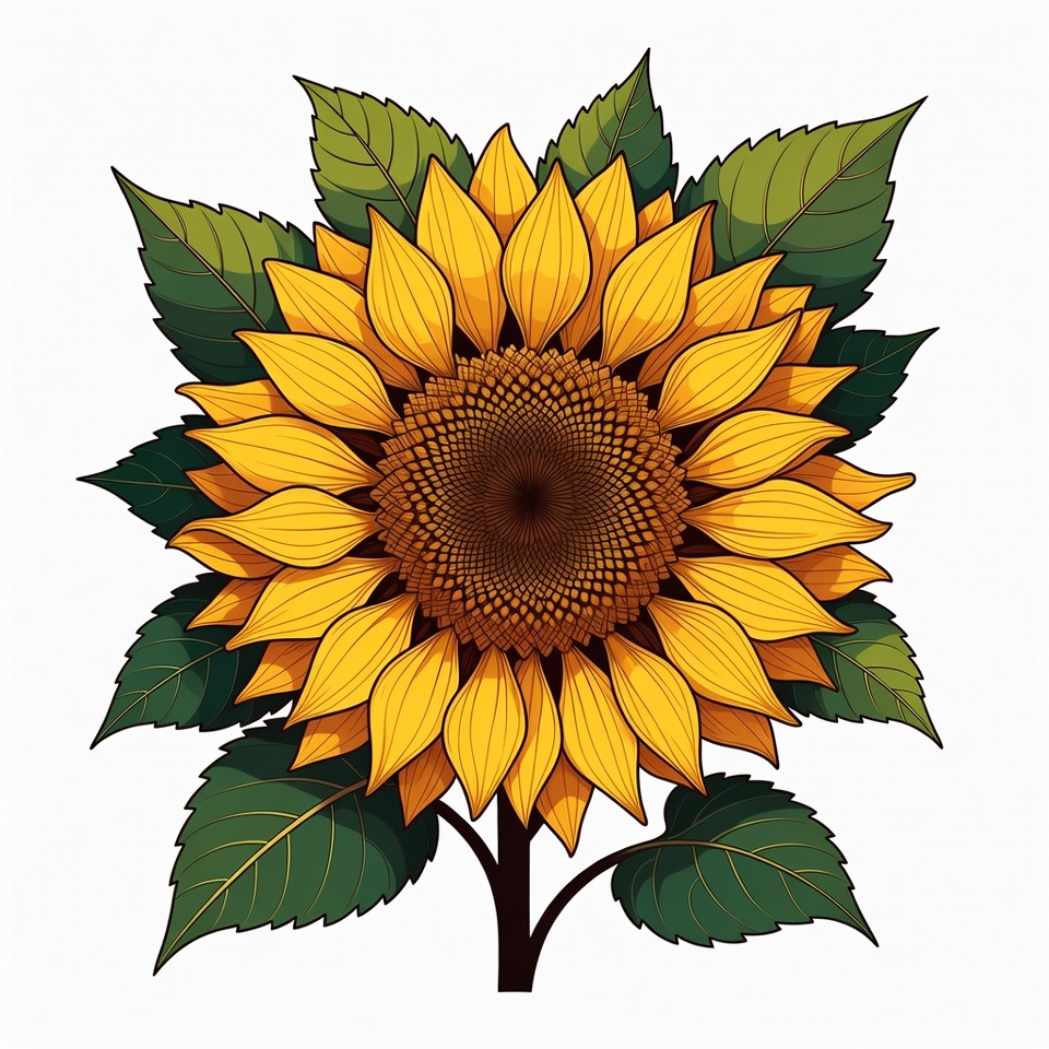 Vibrant Sunflower Illustration with Leaves