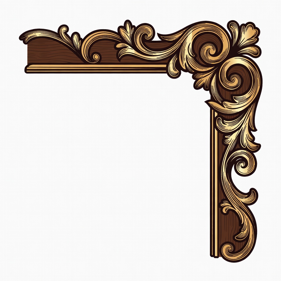 artistic border, baroque style, brown gold, clipart, decorative frame, design element, digital art, elegant border, embellishment, floral design, foliage pattern, frame corner, gold border, golden filigree, graphic design, intricate pattern, isolated background, luxury design, ornamental corner, ornate border, scrollwork, swirling motifs, vector illustration, vintage ornament, wood accent, corner border