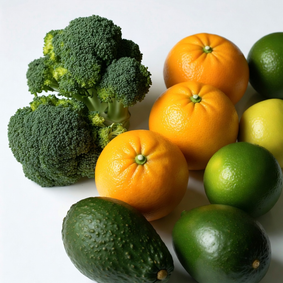 Broccoli Oranges Avocados Lemes Isolated