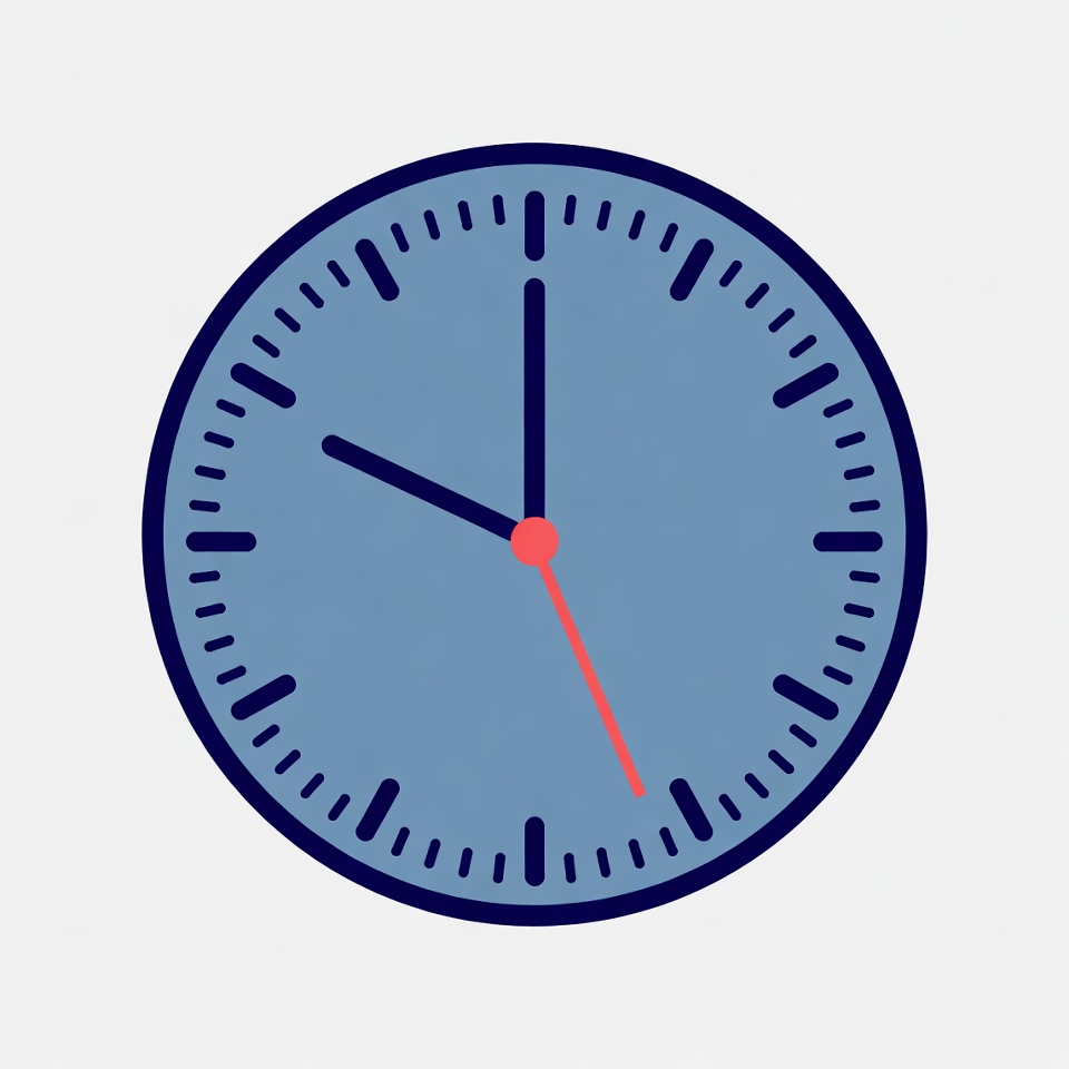 3:00, analog clock, blue clock, clipart, clock face, flat design, hour hand, illustration, isolated background, minute hand, red hand, round clock, second hand, time, clock