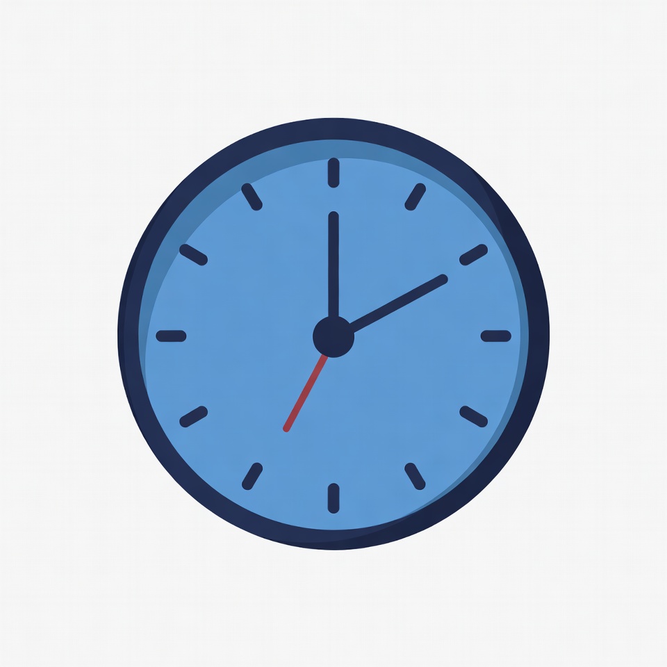 analog clock, black border, blue clock, clipart, clock face, hour hand, illustration, isolated background, minute hand, round clock, second hand, time, watch, white background, clock