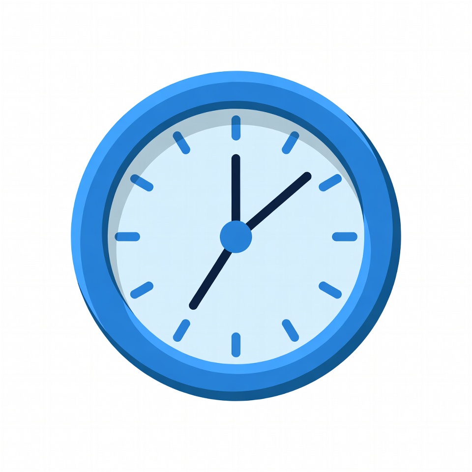 10:10, analog clock, black hands, blue clock, clipart, flat design, hour hand, illustration, isolated background, minute hand, round clock, time, wall clock, white face, clock