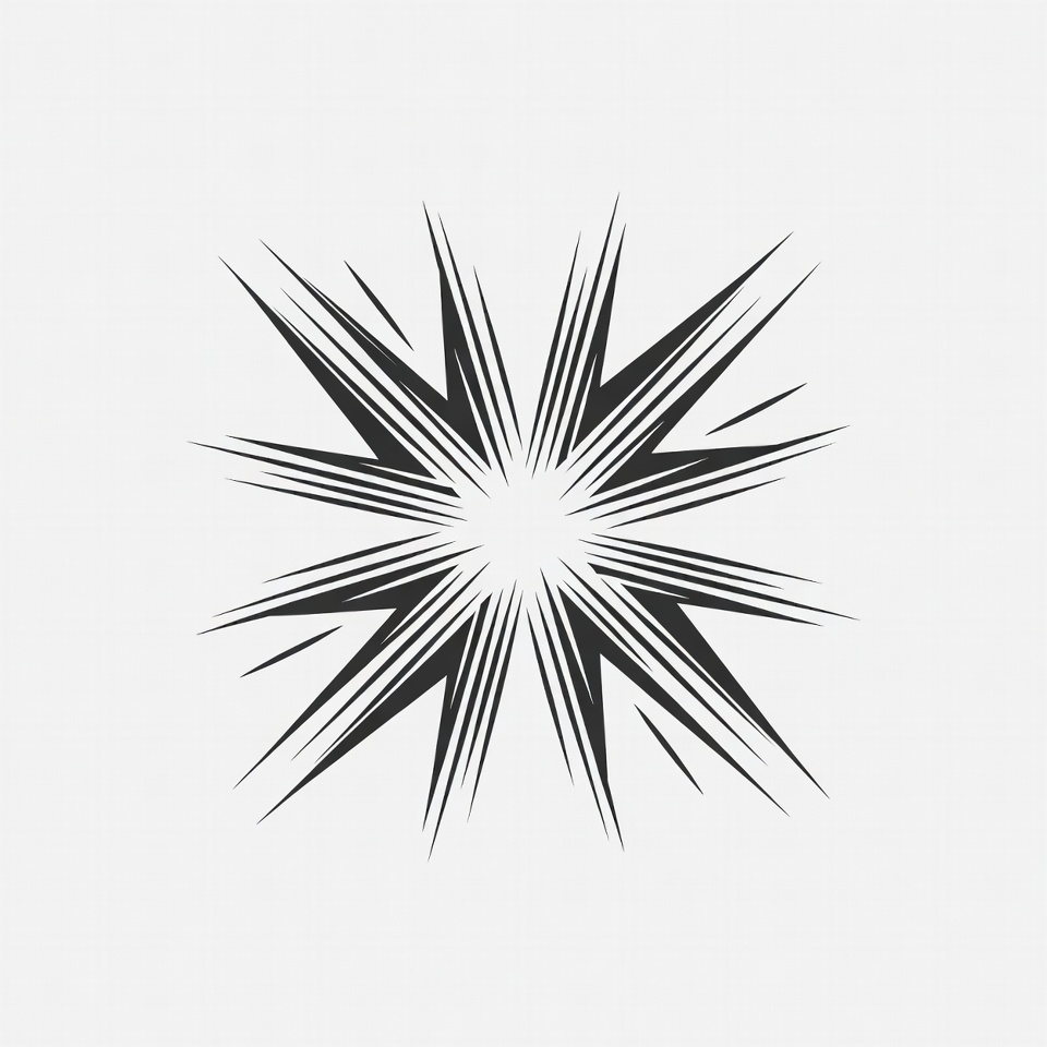 black, burst, center, clipart, design, dynamic, explosion, graphic, illustration, isolated, line art, pointed, radial, radiating, rays, sharp, spikes, symmetric, vector, white background, starburst
