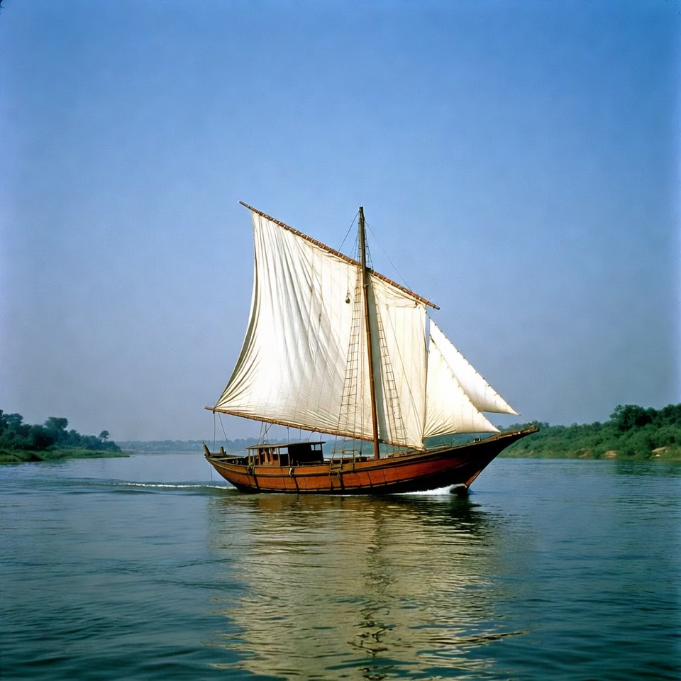 Traditional Dhow Sailing on River