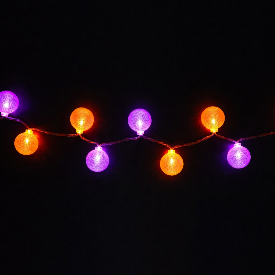 black background, bulb lights, colorful lights, decorative lights, glowing bulbs, hanging lights, holiday lights, led lights, light strand, neon glow, orange lights, party lights, purple lights, string lights, fairy lights
