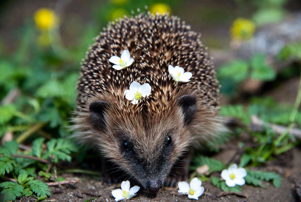Hedgehog with white flowers