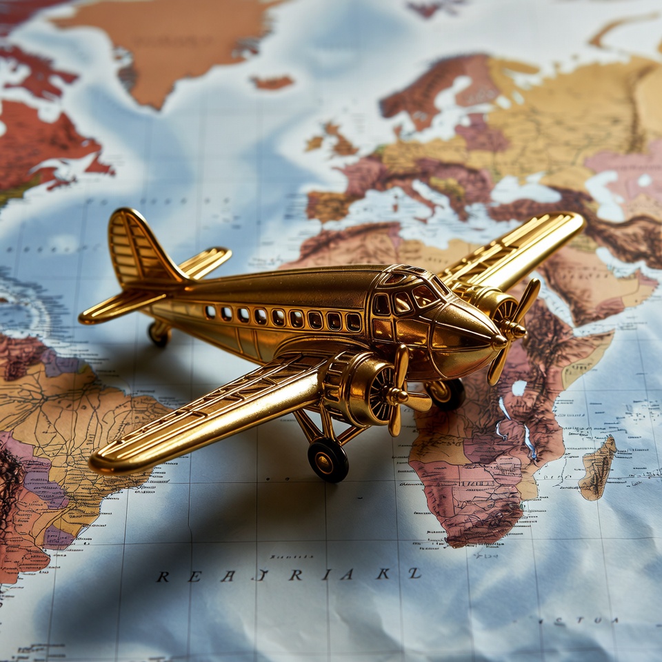 Golden Airplane on World Map