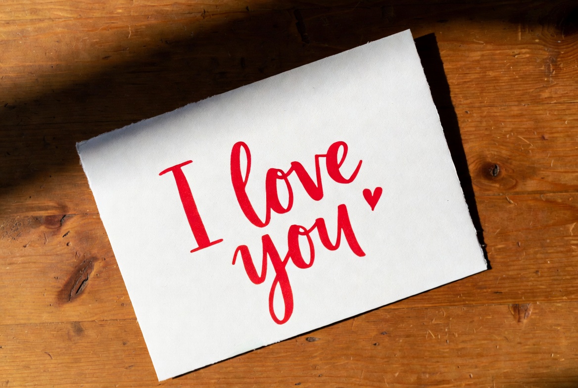 I Love You Card on Wooden Surface