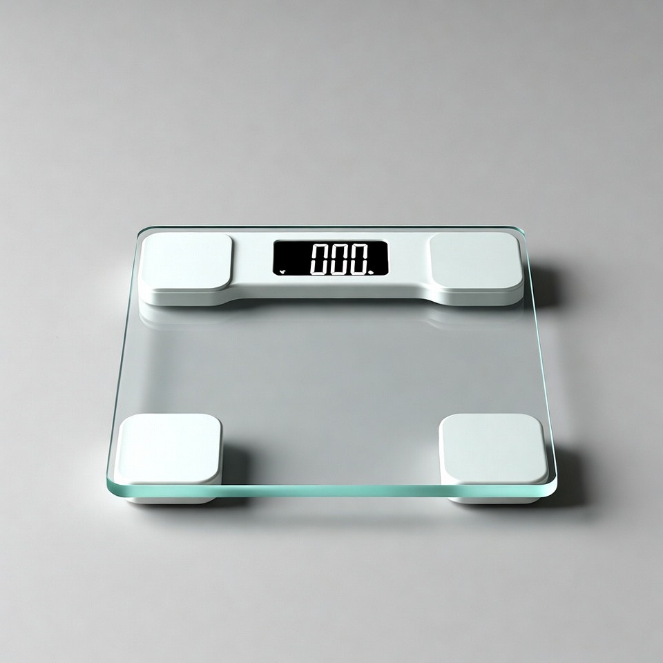 LCD display, body scale, clear glass, digital scale, fitness scale, glass scale, home scale, isolated background, kitchen scale, modern scale, weighing scale, weight scale, white accents, zero display, bathroom scale
