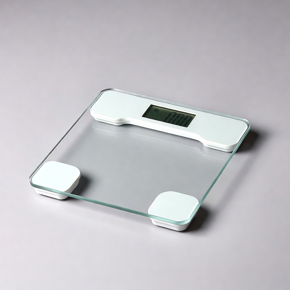 body weight scale, clear platform, digital display, digital scale, fitness scale, glass scale, home scale, isolated background, kitchen scale, modern scale, scale display, weighing scale, weight measurement, white frame, white scale, bathroom scale