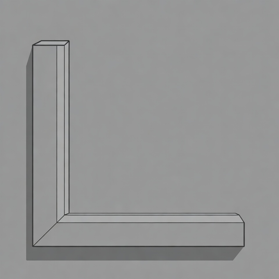 A simple 3D rendered white corner stands against a solid gray background. It features clean edges with subtle shadows creating depth and perspective. The isolated geometric shape appears to protrude from the surface.