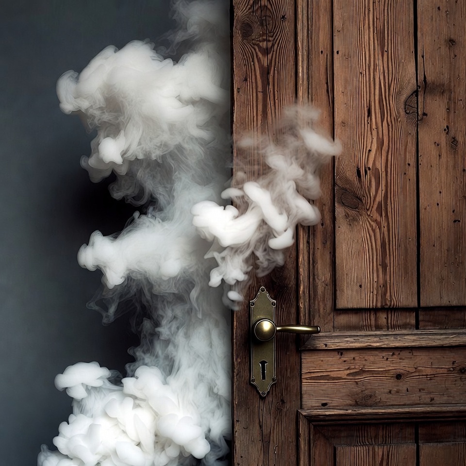 White Smoke Emerging from Wooden Door