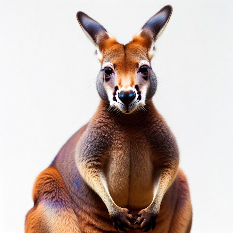 Australian animal, animal, facial markings, isolated, large ears, mammal, marsupial, paws, red kangaroo, reddish fur, standing, white background, wildlife, kangaroo