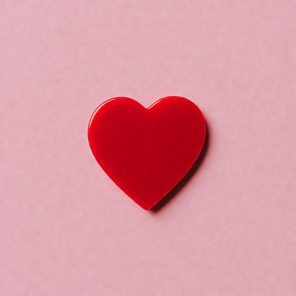 affection, bright red, glossy heart, heart, heart shape, isolated, light pink, love symbol, passion, pink background, plastic heart, romantic, simple design, solid background, valentine, red heart