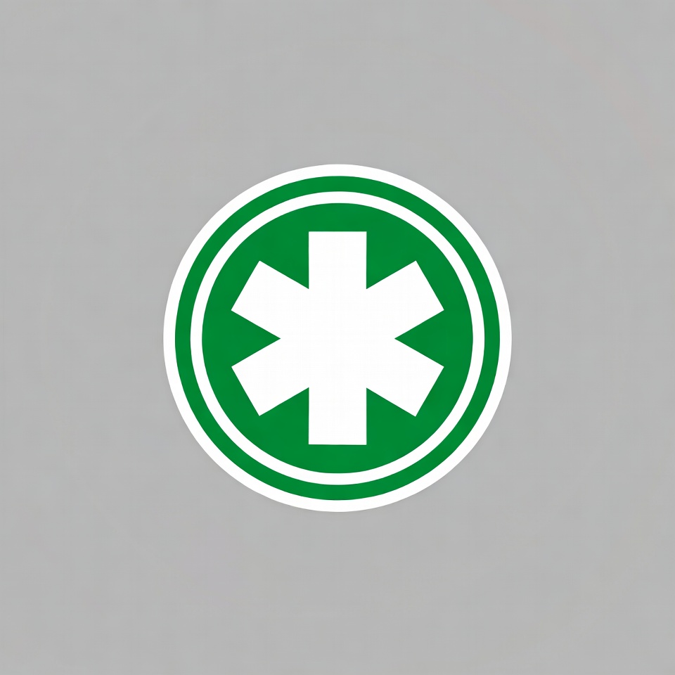 EMS emblem, clipart, emergency services, first aid, green circle, healthcare icon, isolated background, medical symbol, paramedic symbol, vector graphic, white star, Star of Life