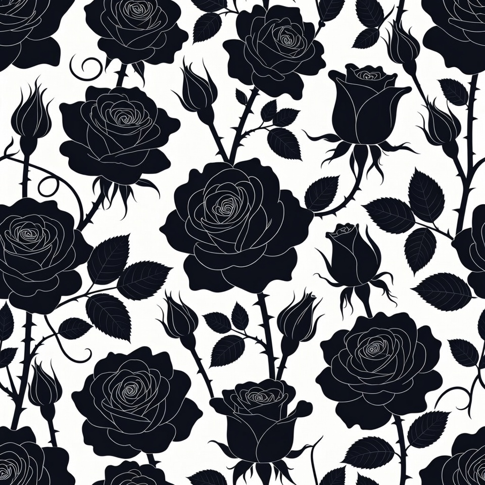 black and white, floral design, floral pattern, flower pattern, gothic roses, outline roses, repeating pattern, rose buds, rose illustration, rose leaves, rose pattern, rose stems, roses, seamless pattern, silhouette roses, thorns, vector pattern, vines, white background, black roses