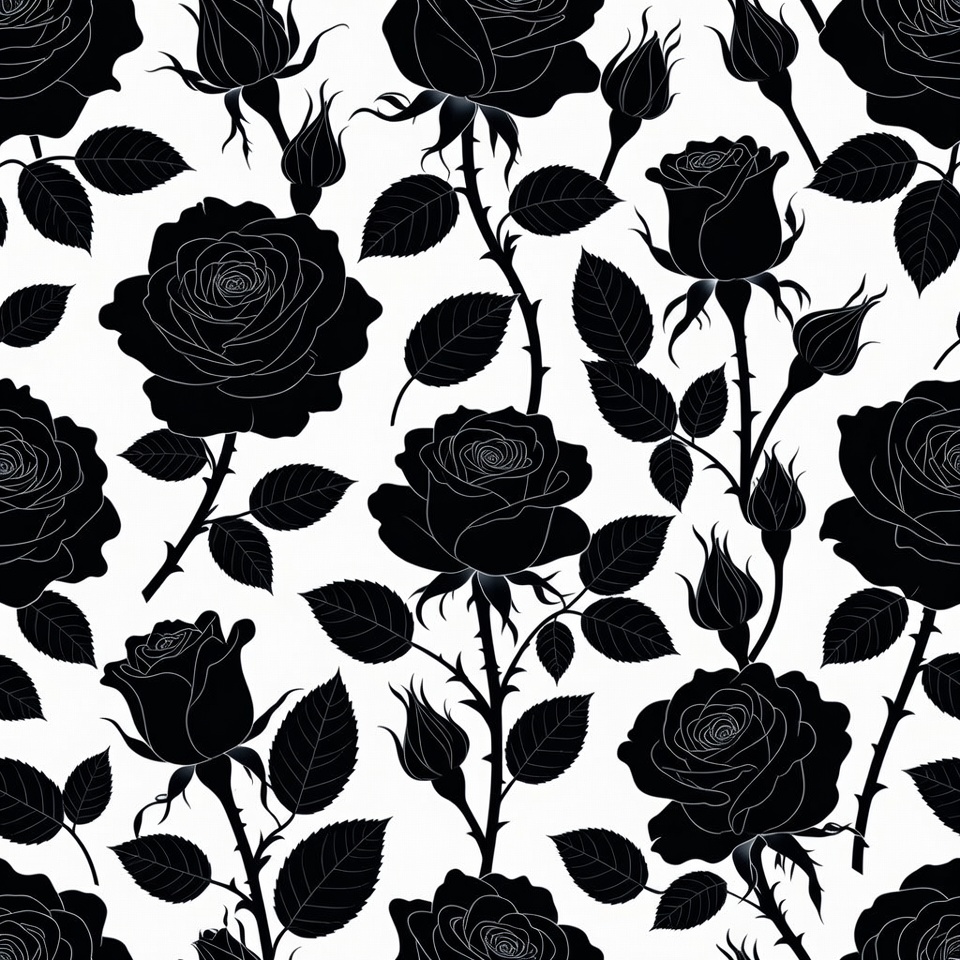 Black Silhouette Roses Pattern