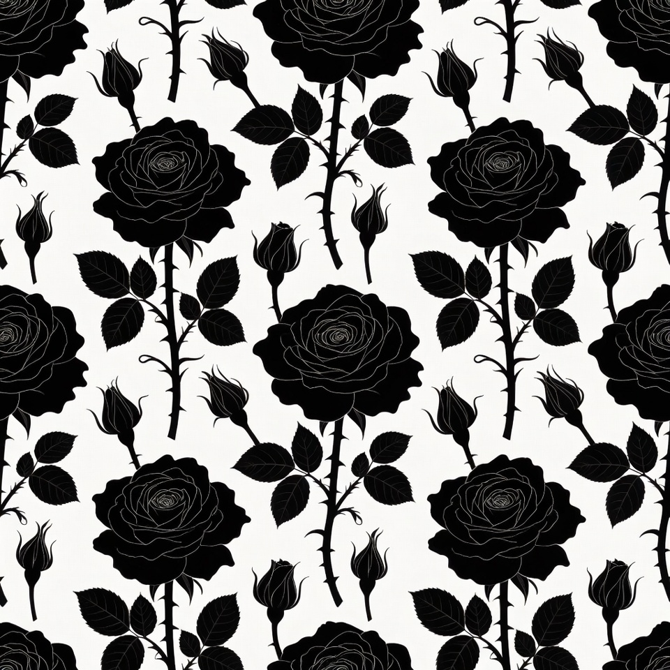 background, black and white, dark roses, floral design, floral pattern, gothic roses, illustration, leaves, repeating pattern, rose buds, rose illustration, rose pattern, rose stems, roses, seamless pattern, silhouette roses, vector art, wallpaper, white background, black roses