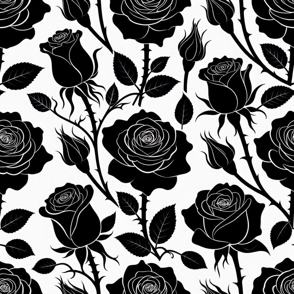 black and white, clipart, elegant roses, floral design, floral pattern, flower pattern, gothic roses, illustration, leaves, line art, outline roses, pattern background, repeating roses, rose buds, rose illustration, rose pattern, roses, seamless pattern, stems, thorns, vector pattern, white background, black roses