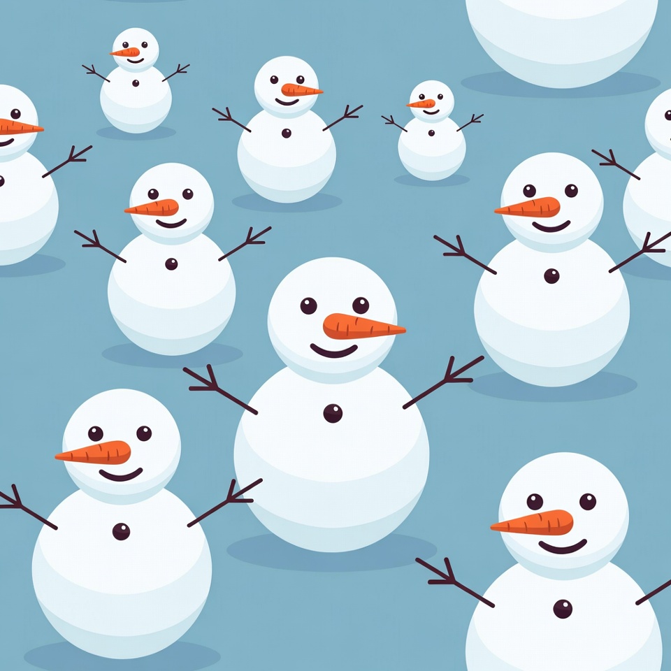 Christmas, blue background, carrot nose, cartoon, clipart, festive, holiday, illustration, isolated background, pattern, repeating pattern, seamless, smiling snowmen, snowman, white snowmen, winter, snowmen