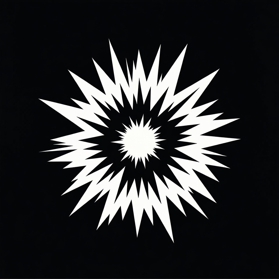 black background, bold graphic, burst, center, clipart, explosion, graphic, illustration, isolated background, radiating, sharp rays, simple design, spikes, symmetrical, vector, white starburst, starburst