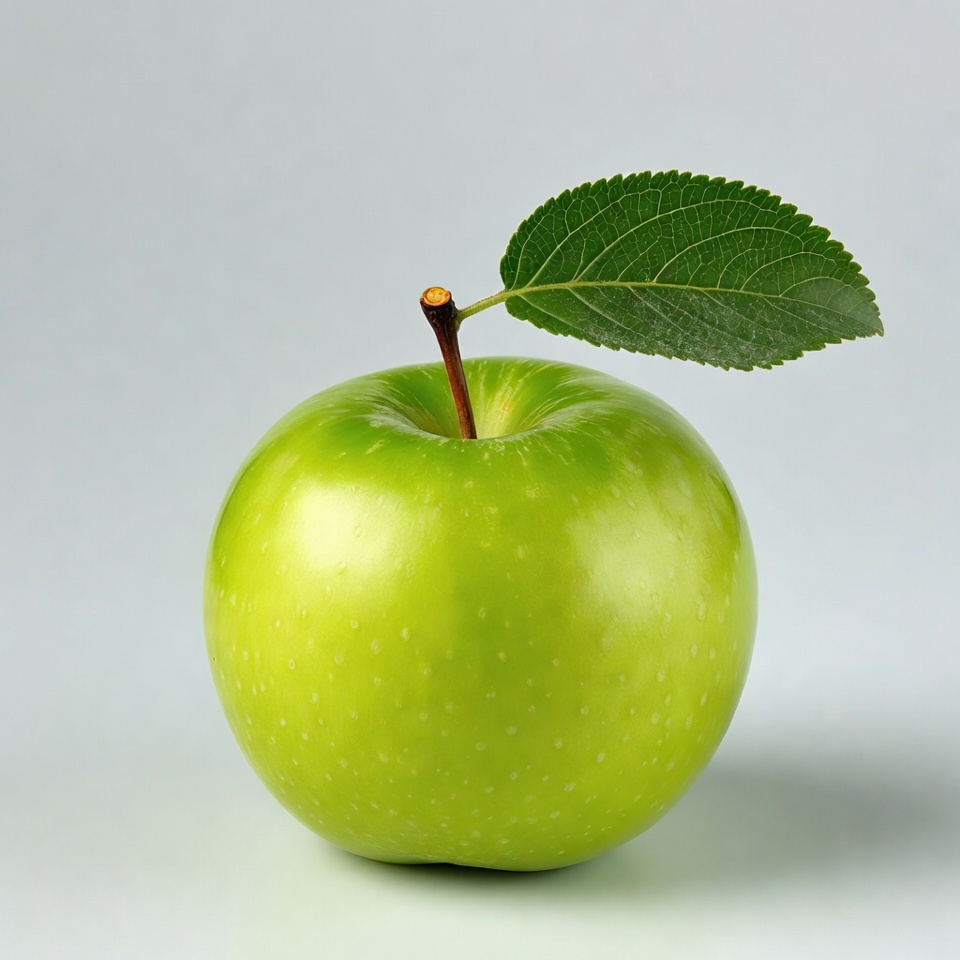 Granny Smith, apple, fresh apple, fruit, healthy food, isolated, leaf, produce, stem, white background, green apple