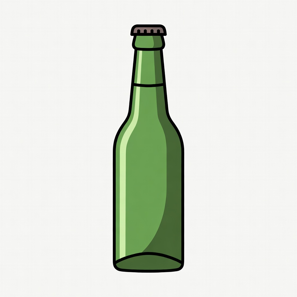alcohol, beer, beverage, bottle, brown cap, clipart, drink, flat design, glass bottle, graphic, green bottle, icon, illustration, isolated background, long neck, vector, beer bottle